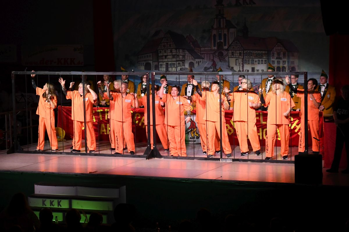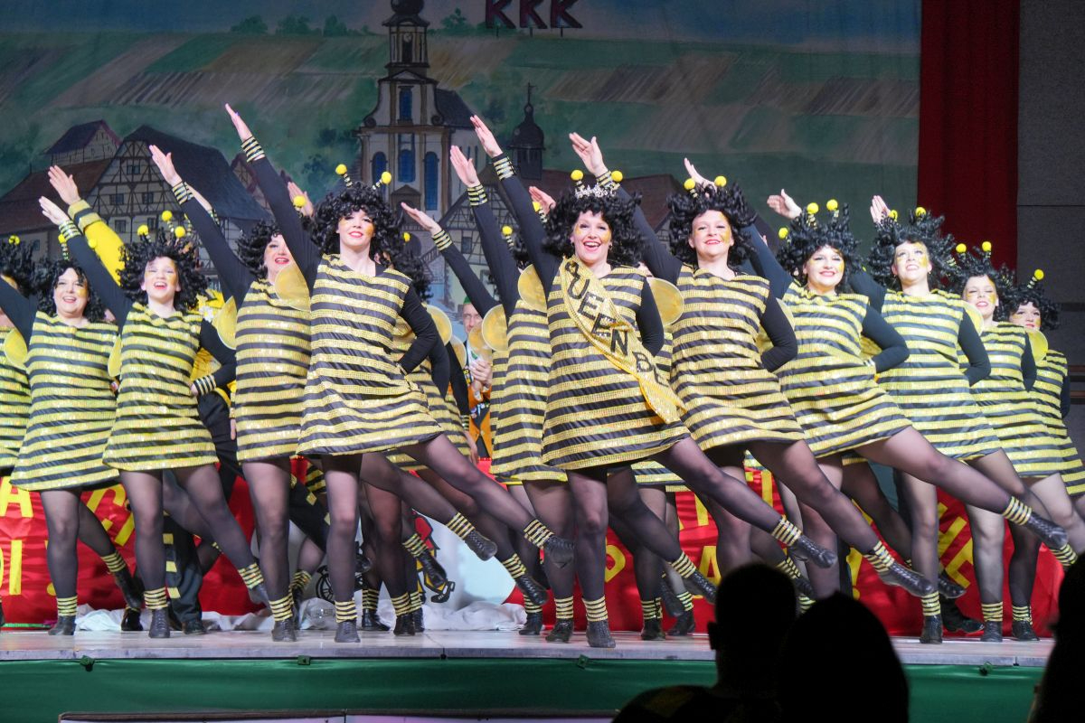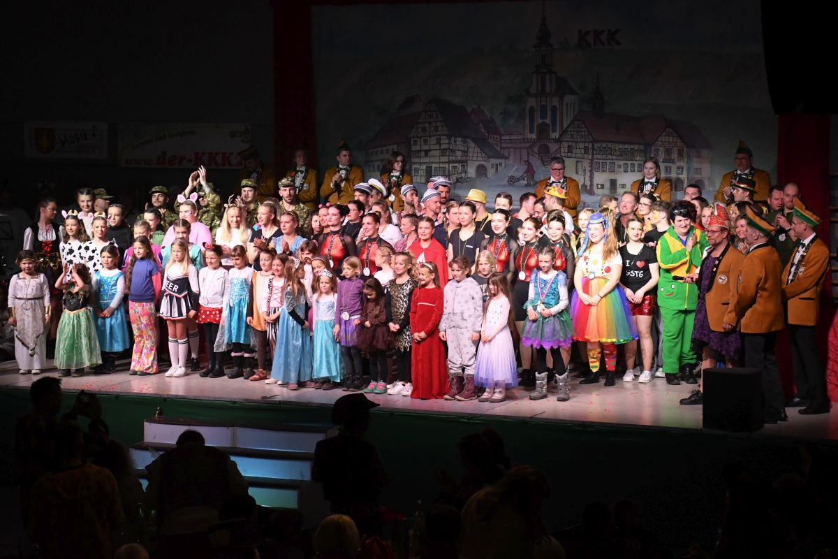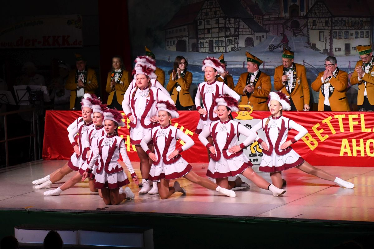 Der Abend in der vollbesetzten Brehmbachtalhalle begann mit dem Einzug des Elferrats samt Garden und zahlreichen Gastabordnungen befreundeter Fastnachtsvereine. Nach der Begrüßung der Gäste durch die beiden Präsidenten gehörte die Bühne der Bettflaschengarde des KKK. Die jüngsten Tänzerinnen und Tänzer schwirrten als Bienenschwarm über die Bühne und erzählten die Geschichte des Honigs. (Trainerinnen: Lea Hofmann, Tabea Haubelt und Laura Bauer)