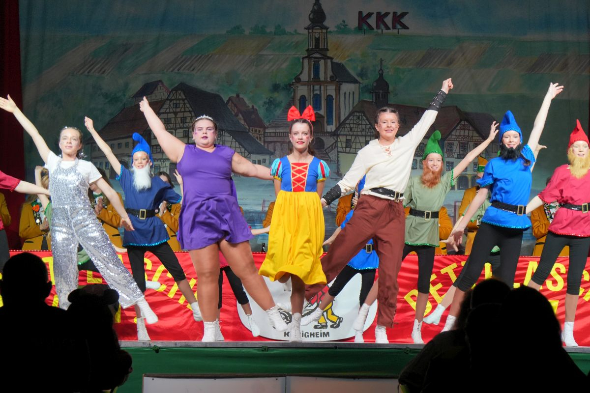 Ein weiteres tänzerisches Highlight setzte die Elferratsgarde des KKK, die mit ihrem Schautanz „Schneewittchen“ in die Märchenwelt zu den sieben Zwergen entführte. (Trainer: Hanna Basel, Lea Schreck, Dana Schreck und Kevin Faulhaber)