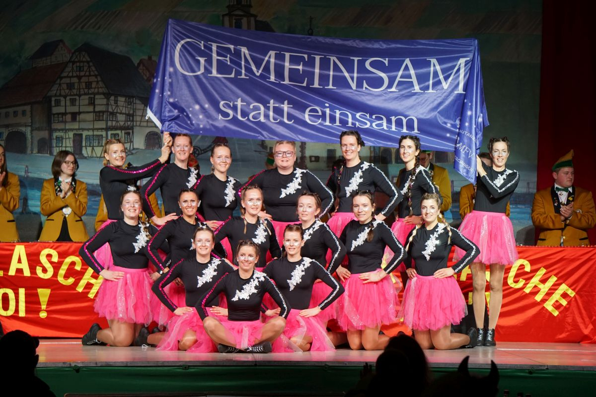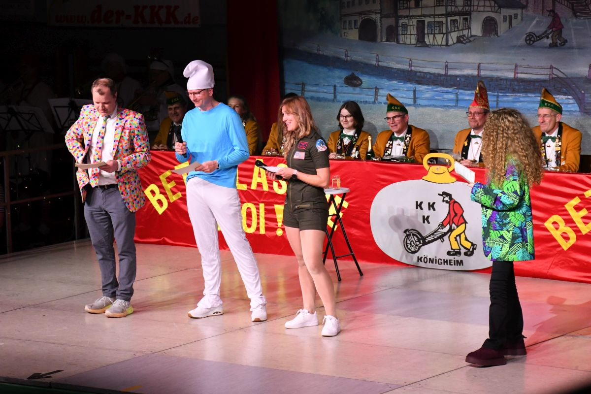 Tierisch und temperamentvoll wurde es mit der gemischten Schautanzgruppe aus FG Aaldemer Dunder, bei der „Die Bienen durchdrehten“. (Trainerinnen: Milena Kaiser und Jasmin Hock) Bevor die Frauen von „Freibier No. 10“ mit „Time to escape“ mit geballter Power für ausgelassene Stimmung sorgten. (Trainerinnen: Lara Baumbusch, Lara Sanchez und Sabrina Seufert) Auch Bürgermeister Ralf Dörr nutzte die Bühne für einen humorvollen Vortrag und berichtete als Papa Schlumpf von Königheim über seine bisherige Amtszeit. Dabei zog er in gereimter Form Bilanz und sorgte mit Wortwitz und Schlumpf-Sprüchen für viele Lacher.