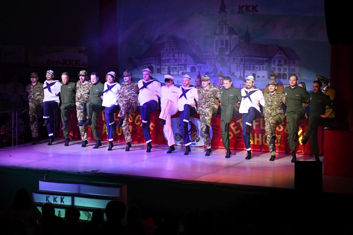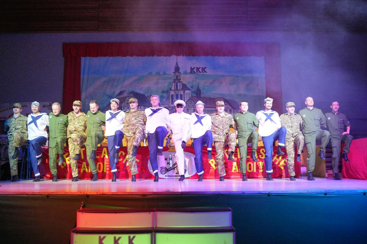 Last but not least setzte das Männerballett des Gastgebers (Anna-Lena Walzenbach und Theresa Schreck-Esser) mit dem Schautanz „Chaostruppe – Wehrpflicht 2.0“ als Heer, Marine und Luftwaffe verkleidet einen tänzerischen Höhepunkt – der Applaus war so groß, dass eine Zugabe natürlich Pflicht war.